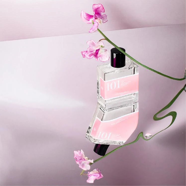 With Damask rose essence and absolute, this fragrance reveals fresh and floral notes. Our perfumer Alexandra Monet added green and spicy cardamom to the top notes. In the heart notes, rose is enveloped in a sweet pea accord and delicate lily of the valley to accentuate the floral touch. Musk and white cedar lend a very powdery, cottony softness to the base notes, while patchouli gives 101 definite character.