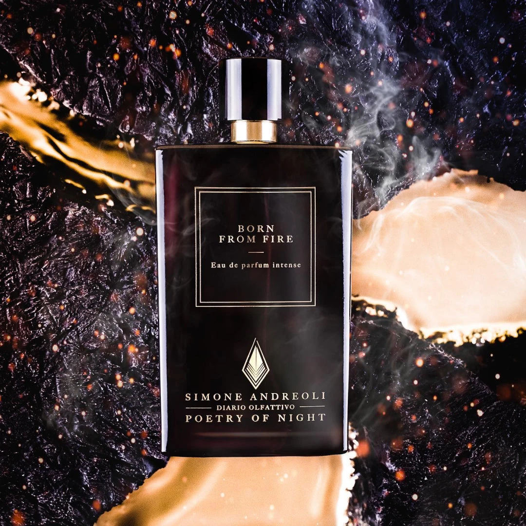 Born From Fire by Simone Andreoli is a rich sweet amber fragrance with a pop of pepper and delicate saffron over a dark blend of rose and oud with vanilla absolute, burnt sugar and cashmere woods.