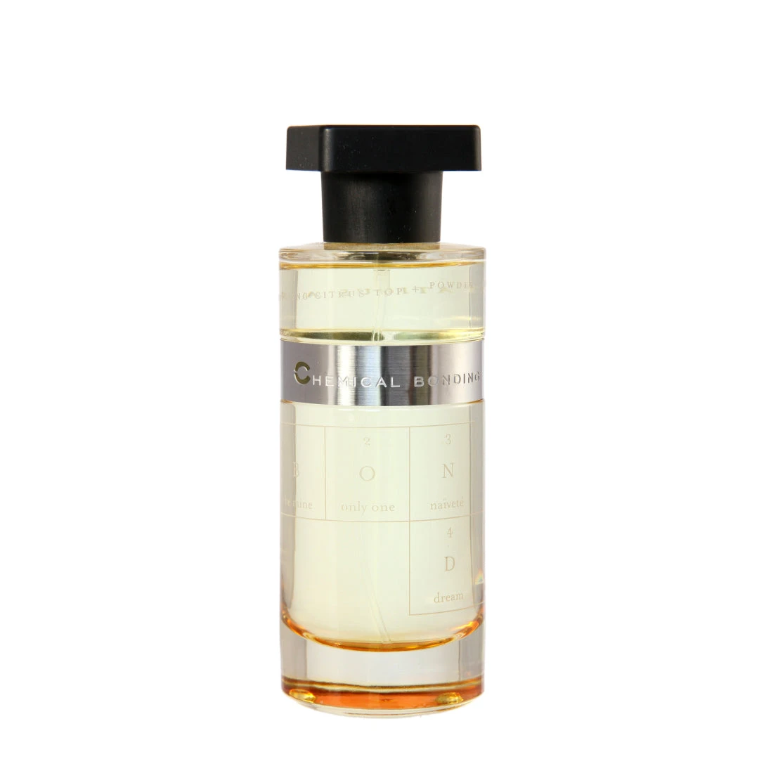 Chemical Bonding playfully juxtaposes Chemistry 101 principles with human attraction. The scent combines citrus notes with a powdery soft base, resulting in a flirtatious alchemy. Like a clean, soft cashmere sweater, let this fresh and modern fragrance envelop you. Fresh top notes of citrus and tea give way to a soft heart of peony, arriving at a soft, powdery base of amber and musk.