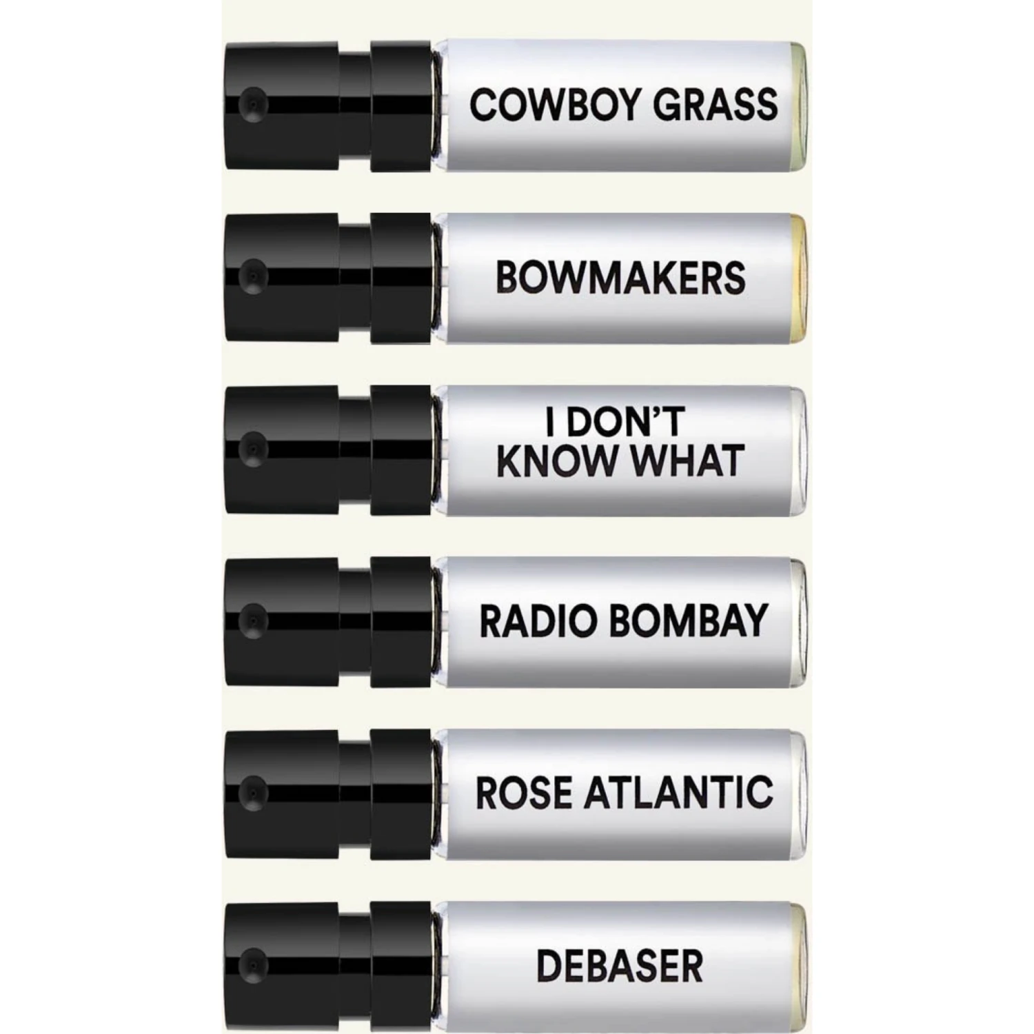 This set includes 6 x 1.5 ml vials for the following fragrances.