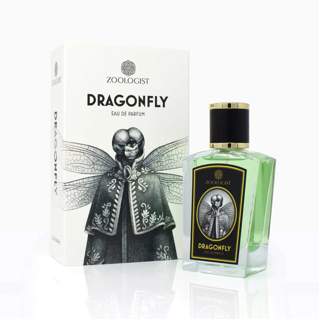 Zoologist Dragonfly is a shimmering aquatic floral fragrance with a subtle rice accord and a unique blend of basil and ginger, citrus and geranium, orris and violet leaves.