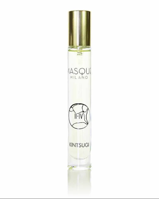 Kintsugi by Masque Milano is a perfume that evokes a magnolia tree growing in a springtime garden with roses, supported by golden suede and savory amber.