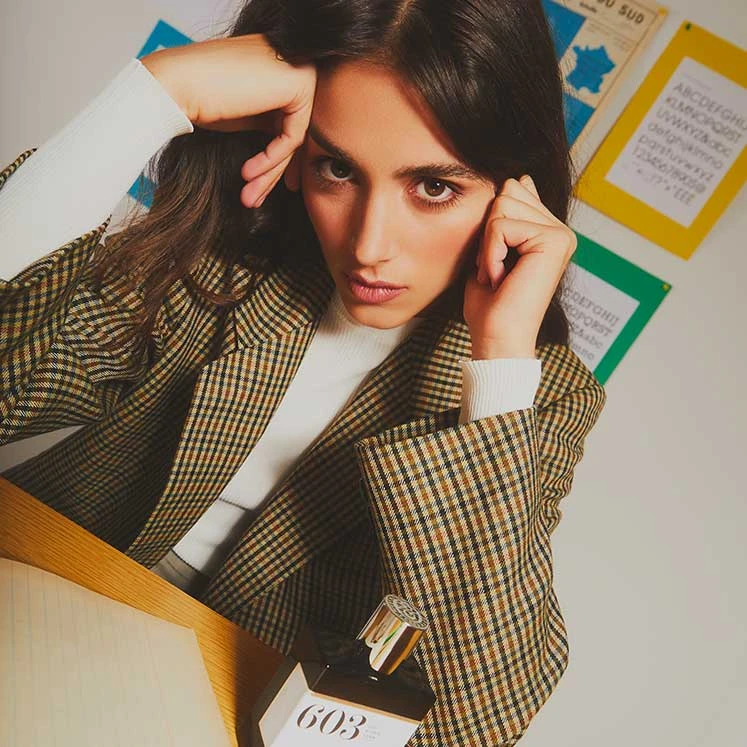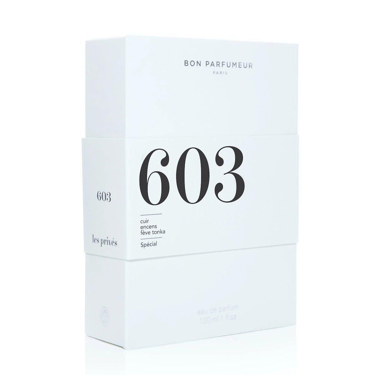 This daring fragrance opens on dark and intense notes with spicy yet floral aromas. Frankincense adds freshness and mystery to the body of the fragrance. The notes of leather and tonka lend a sensual dimension to this eau de parfum. With both warm and green amber hints, woody fragrance 603 will surprise you with its generosity.