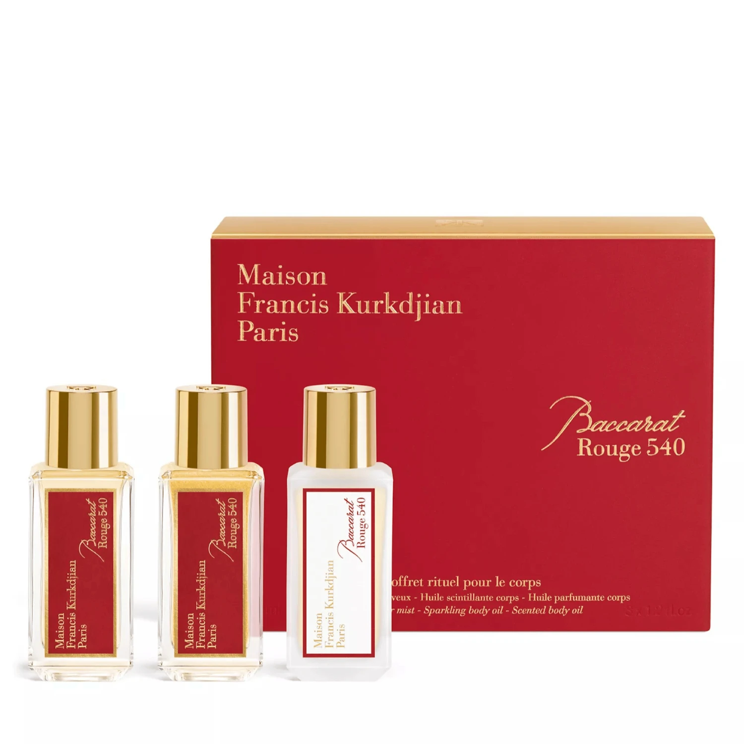 This perfect body ritual includes a scented body oil, a shimmering body oil, and a hair mist. The body oil leaves the skin silky-smooth and subtly perfumed while the Baccarat Rouge 540 sparkling oil provides 24-carat gold radiance, inspired by the secrets of Rouge à l’or. The final flourish is the scented hair mist, which provides a delicate and luminous sillage.