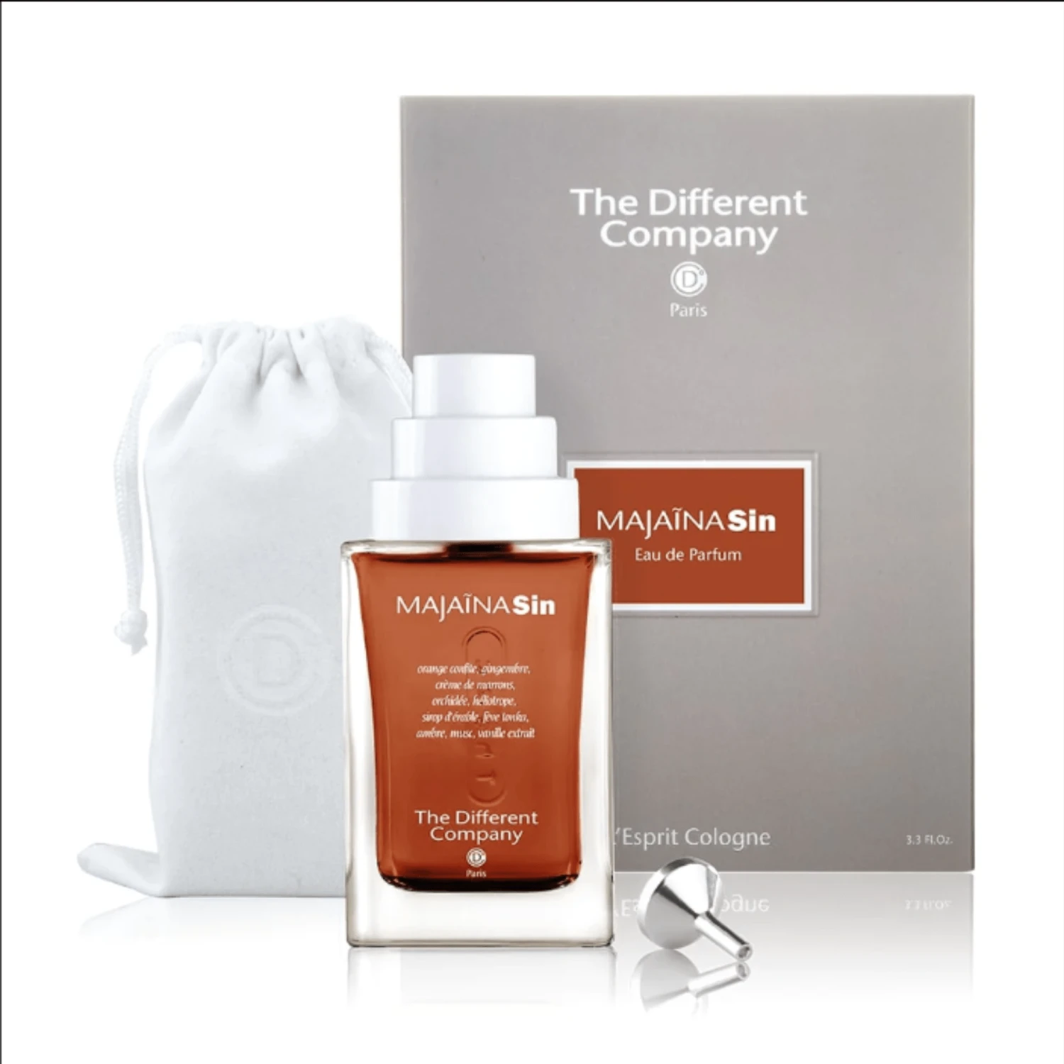 Majaina Sin is opulently fresh, made of an outrageous vanilla, a brown treasure from Madagascar. Alongside it other jewels from the fertile land: explosive cinnamon and salivating ginger.